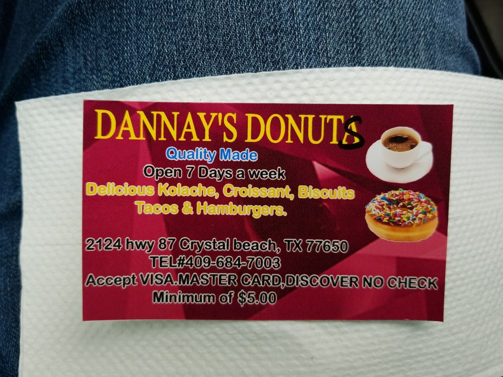 Welcome to Dannay's Donuts, a hidden gem located in Crystal Beach, TX. This inviting spot effortlessly combines the classic comfort of donuts with the savory allure of breakfast tacos and kolaches. Guests rave about the quick and friendly service, making it an ideal stop for families, especially with its convenient drive-thru option.